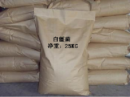 用途:白僵菌是一种真菌性杀虫剂,其孢子接触害虫后产生芽管,通过皮肤侵入其体内长成菌丝,并不断繁殖使害虫新陈代谢紊乱致死。白僵菌制剂对人、畜无毒,对作物安全,无残留、无污染,但对蚕有毒害。白僵菌侵染害虫致病,需要一定的温、湿度条件和使孢子萌发的足够水分。一般在5~30℃之间可发育,发育最适温度为24~28℃。孢子5℃萌发需相对湿度在90%以上,饱和湿度最适宜。白僵菌感染害虫后致死速度缓慢,一般需经4~5天后死亡,白僵菌与低剂量的杀虫剂,如对硫磷微胶囊剂混用有增效作用。白僵菌可侵染鳞翅目、同翅目和鞘翅目等多种害虫的幼虫,适于林、果和农作物上使用。